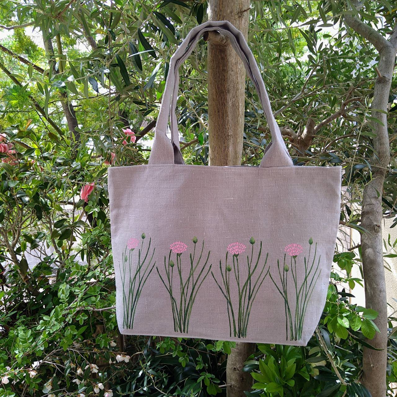 ●持ち手:ポリジ・ローズゼラニウム・チャイブ 長さ51cm 元幅5cm 二つ折り幅2.5cm タイム 長さ50cm 元幅4cm 二つ折り幅2cm